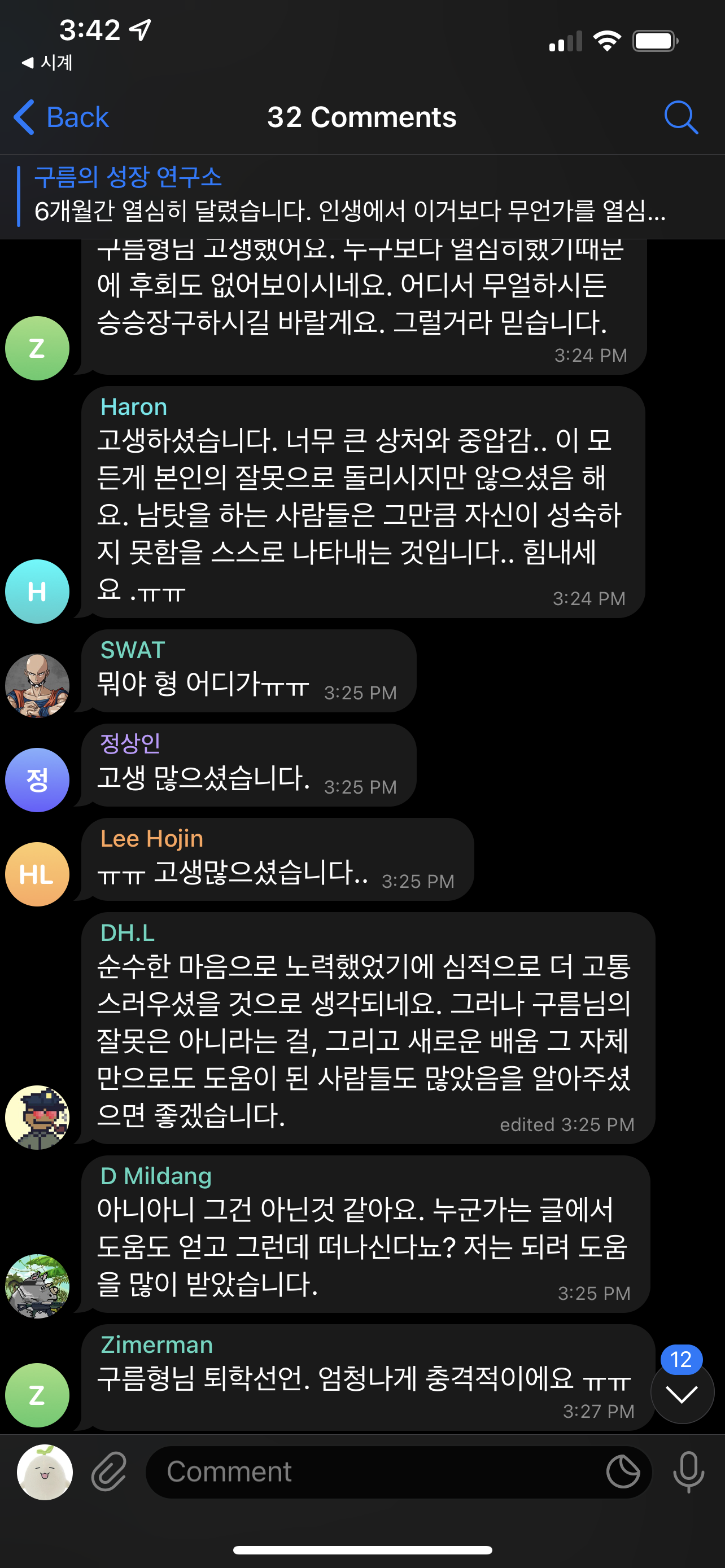길게 주저리 주저리 일기마냥 휘갈겨 쓴글이고 충동적으로 행동했는지도 모릅니다. 반년간 정말 인생에 무엇보다 열심히해본적 없는 이 판 자퇴합니다. 번것도 없고 잃기만 했지만 소중한 인생의 경험 어리다면 어린나이에 수업료 거하게 치르고 배웠습니다.