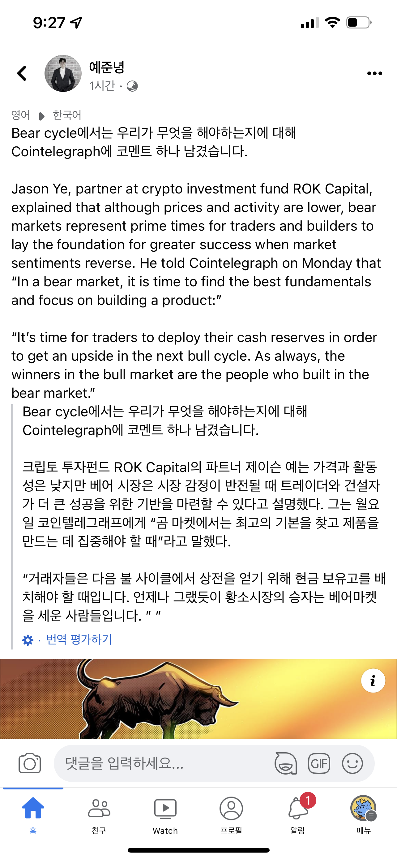 3개/크립토(분류포기) what we have to do in bear cycle? 무말랭이 2022. 5. 30. 21:28 https://cointelegraph.com/news/market-cleansing-bear-cycles-are-healthy-say-industry-experts?fbclid=IwAR3bC9u3J97pyD_CARw7BT2i9ZwGv4tQPBobyHUjkz6bMjziiHqrp6EAHdc&fs=e&s=cl