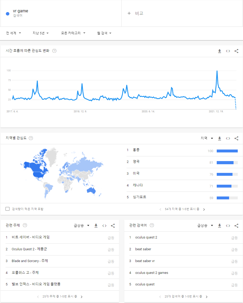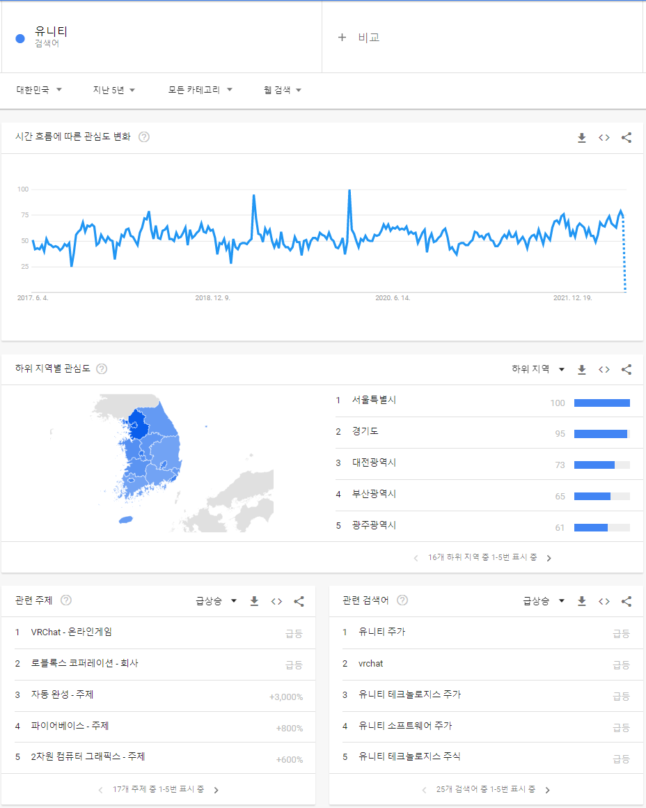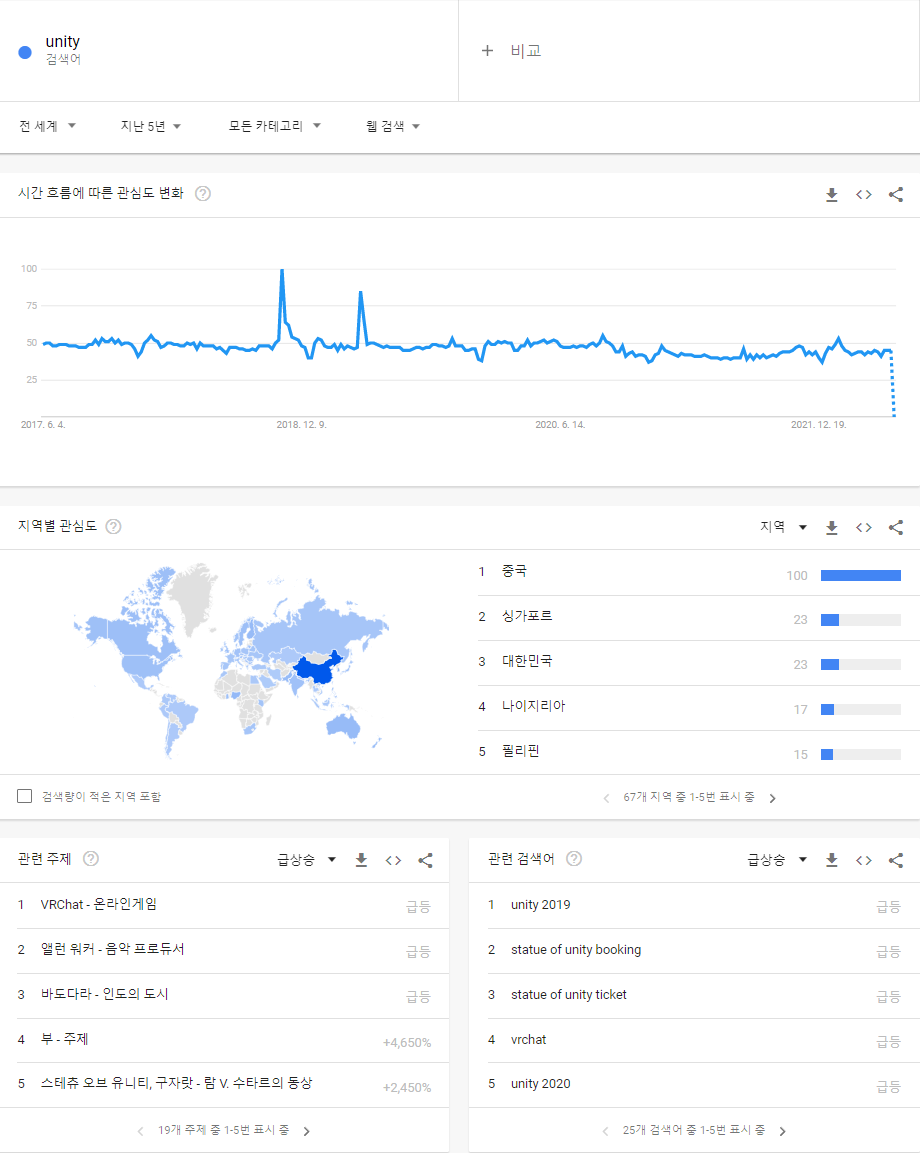 구글 검색어 트렌드, 유니티, 블렌더 등