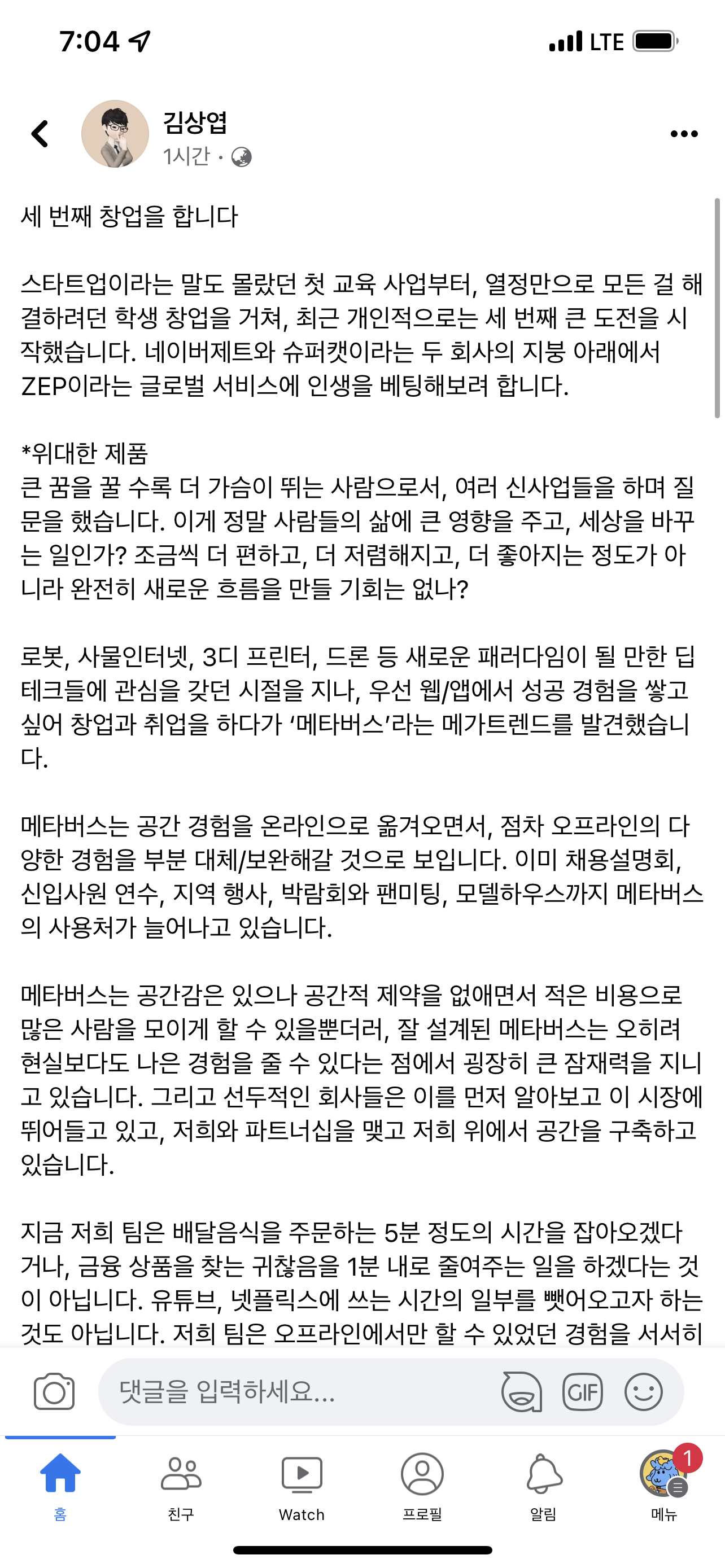 큰 꿈을 꿀 수록 더 가슴이 뛰는 사람으로서, 여러 신사업들을 하며 질문을 했습니다. 이게 정말 사람들의 삶에 큰 영향을 주고, 세상을 바꾸는 일인가? 조금씩 더 편하고, 더 저렴해지고, 더 좋아지는 정도가 아니라 완전히 새로운 흐름을 만들 기회는 없나?