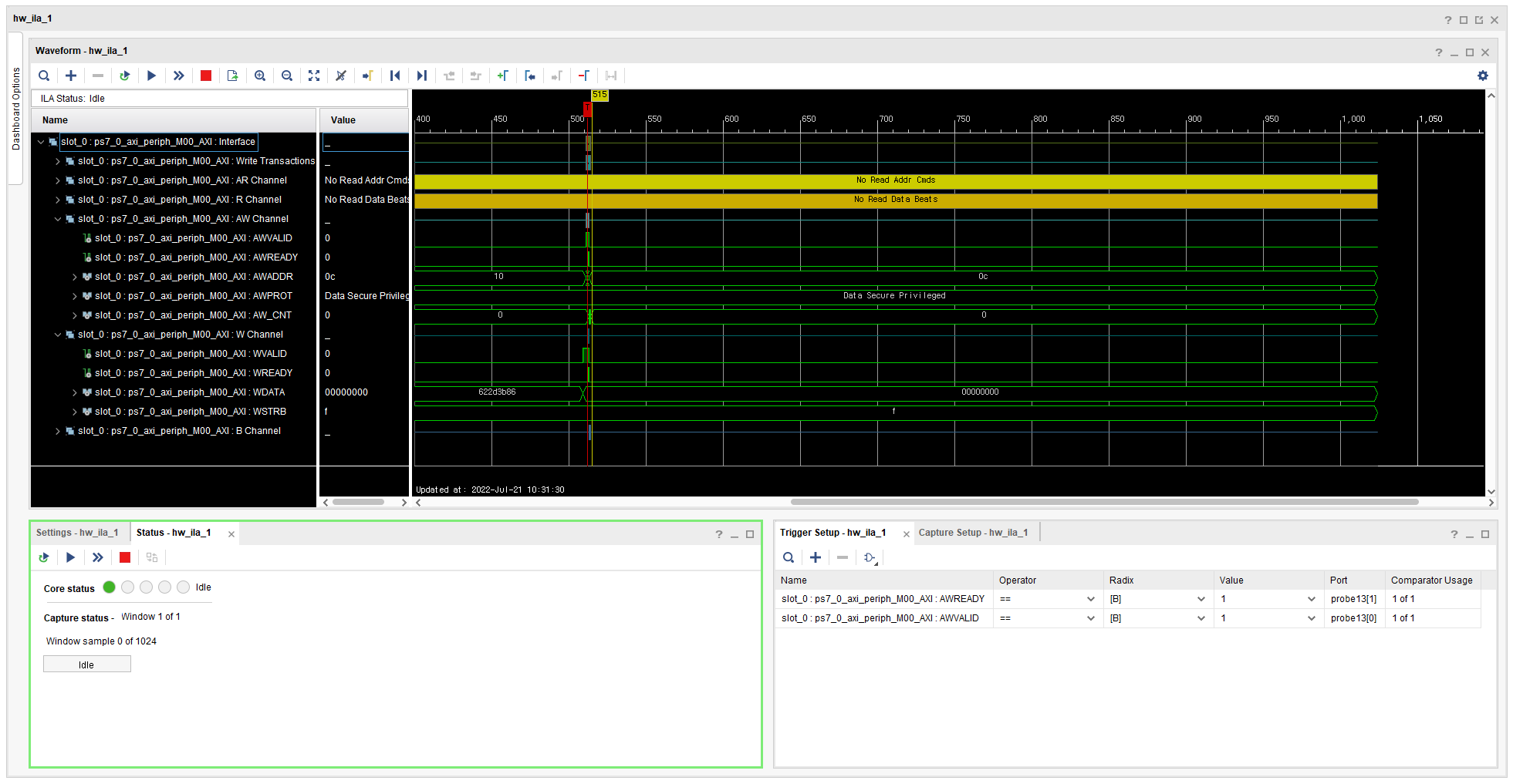 안녕하세요. 13강을 공부중에 있었습니다. vivado에서 ila triggering을 통해 hw의 동작을 확인중인데 (27:51) [FPGA 13장] AXI4-Lite I/F 를 사용하여 Register 가 아닌 메모리에 Write / Read 해보기 - 실습편 &nbs...