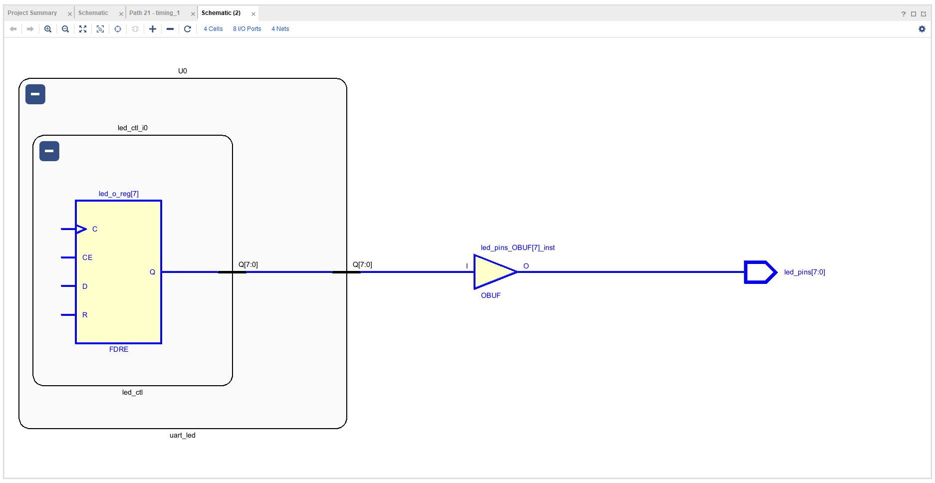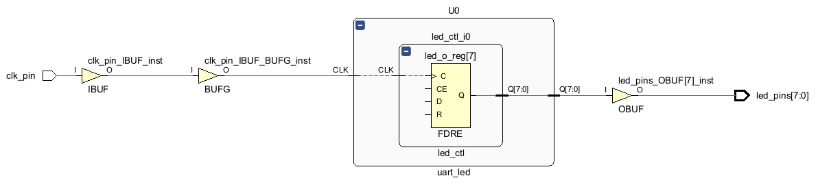 (여기서 지금 IBUF, BUFG, FDRE, OBUF와 관련된 내용을 이해하지 못한 것으로 느껴진다.)
