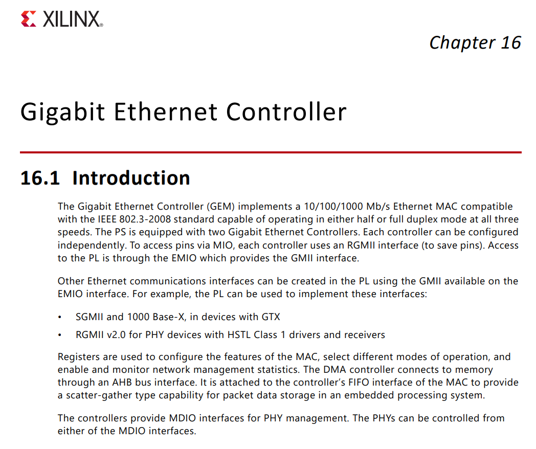 For more low-level information on using the Zynq-7000 Gigabit Ethernet MAC, refer to the Xilinx Zynq Technical Reference Manual.