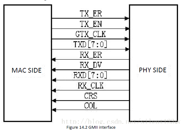 The TX_EN signal line transmits TX_EN and TX_ER information, TX_EN is transmitted on the rising edge of TX_CLK, and TX_ER is transmitted on the falling edge. Similarly, RX_DV and RX_ER are transmitted on the RX_DV signal line, and RX_DV is transmitted on the rising edge of RX_CLK, and RX_ER is transmitted on the falling edge.